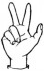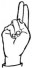 На ћирилици написано ВАЛЕНТИНА ОЛУЈИЋ састоји се из 15 слова [?]. Исписано ћириличном једноручном азбуком за глувонеме: